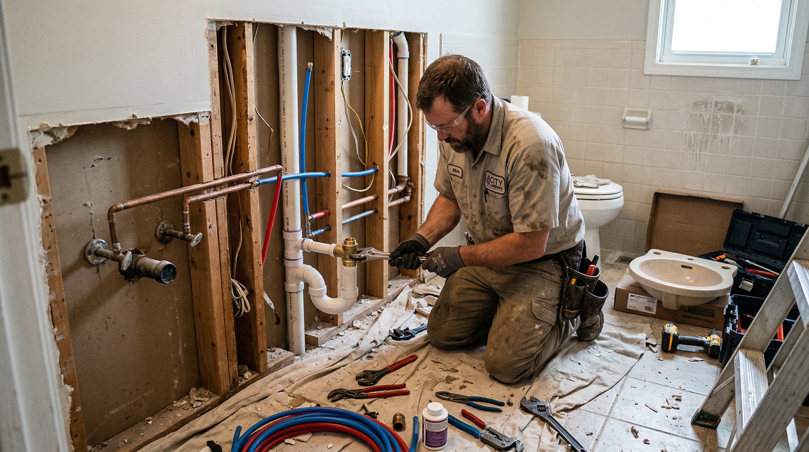 Keep all fixtures in place: $400–$1,200 in labor. Move one fixture: add $500–$2,000 on top. Move two: add $1,500–$4,000 total. Slab foundations add $500–$1,500 for concrete cutting before any pipe work begins. Licensed plumbers are required in all US states unlicensed work voids homeowner's insurance.